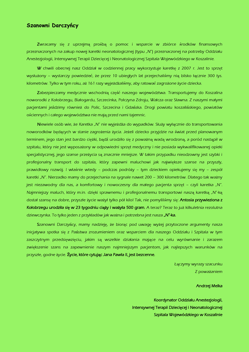 • Dlaczego potrzebna jest nowa karetka „N” ?